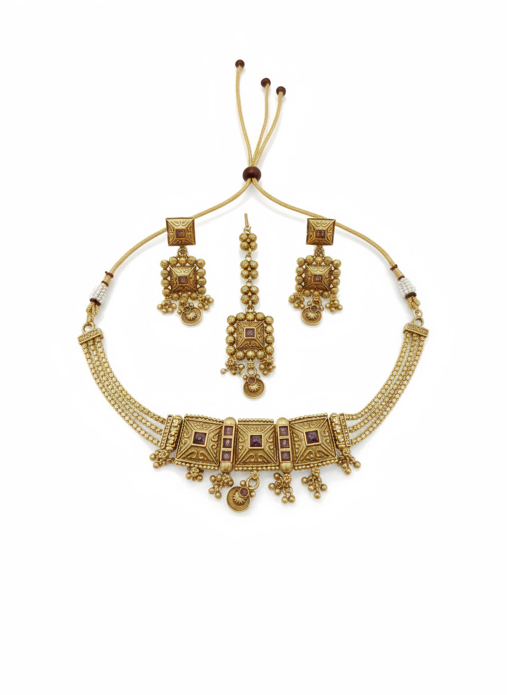 Type: Choker Necklace, Matching Earrings, and Maang Tikka Set