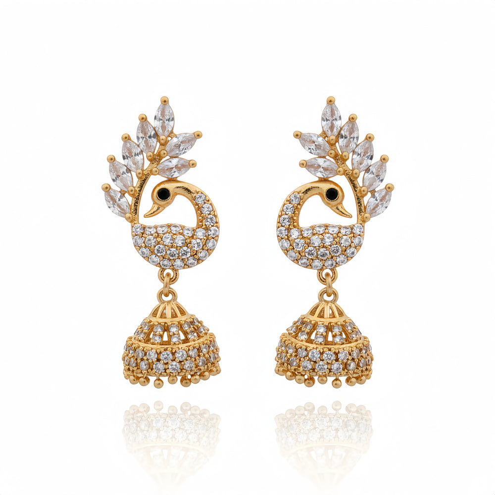 Type: Peacock Motif Crystal Jhumka Earrings
